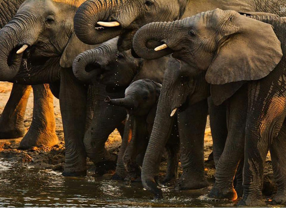 African elephants’ skin is extremely sensitive. They will protect themselves from the sun and pests by wallowing in mud or flinging sand over their bodies, which will change their apparent colour from greyish black to the colour of the soil around them.